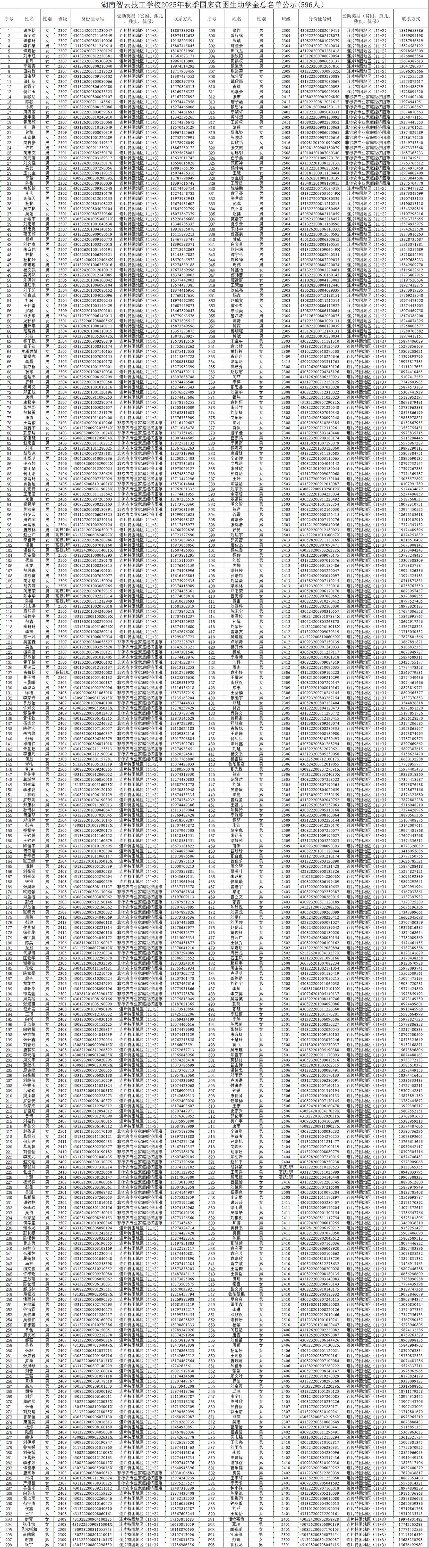 我们在此郑重公示“2025年秋季助学金”享受人员名单。经过严格的审核和公正的评选,本次共有596位学生符合助学金申请条件,并将获得相应的资助。我们坚持公平、公正、公开的原则,确保每一份助学金都能真正帮助到需要帮助的学生。感谢各位对我校的支持与关注,我们将继续努力,为更多学生创造更好的学习环境。